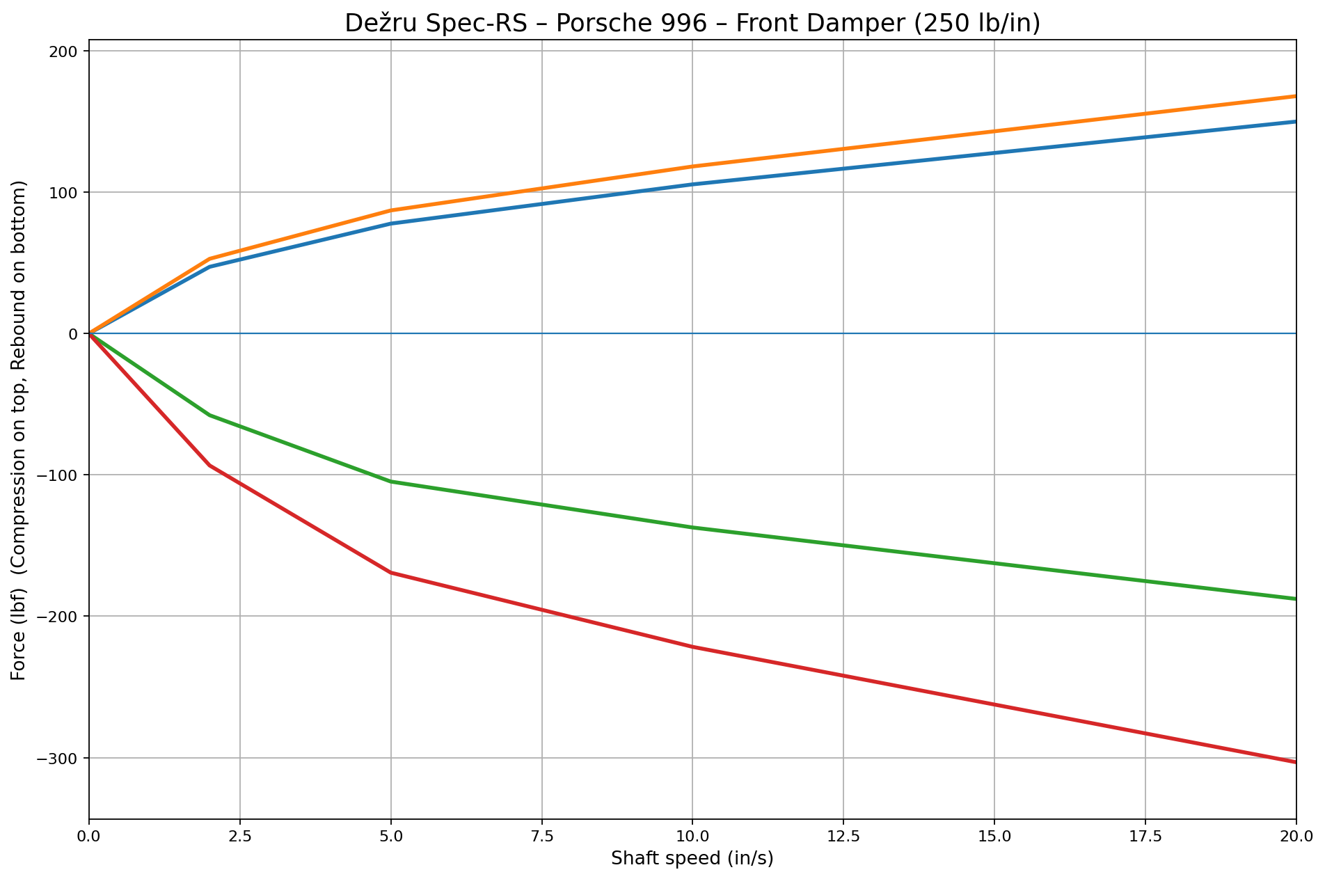 250 lb/in front and 450 lb/in rear spring rates, selected to stabilize the rear-engine layout while maintaining front grip and steering clarity.