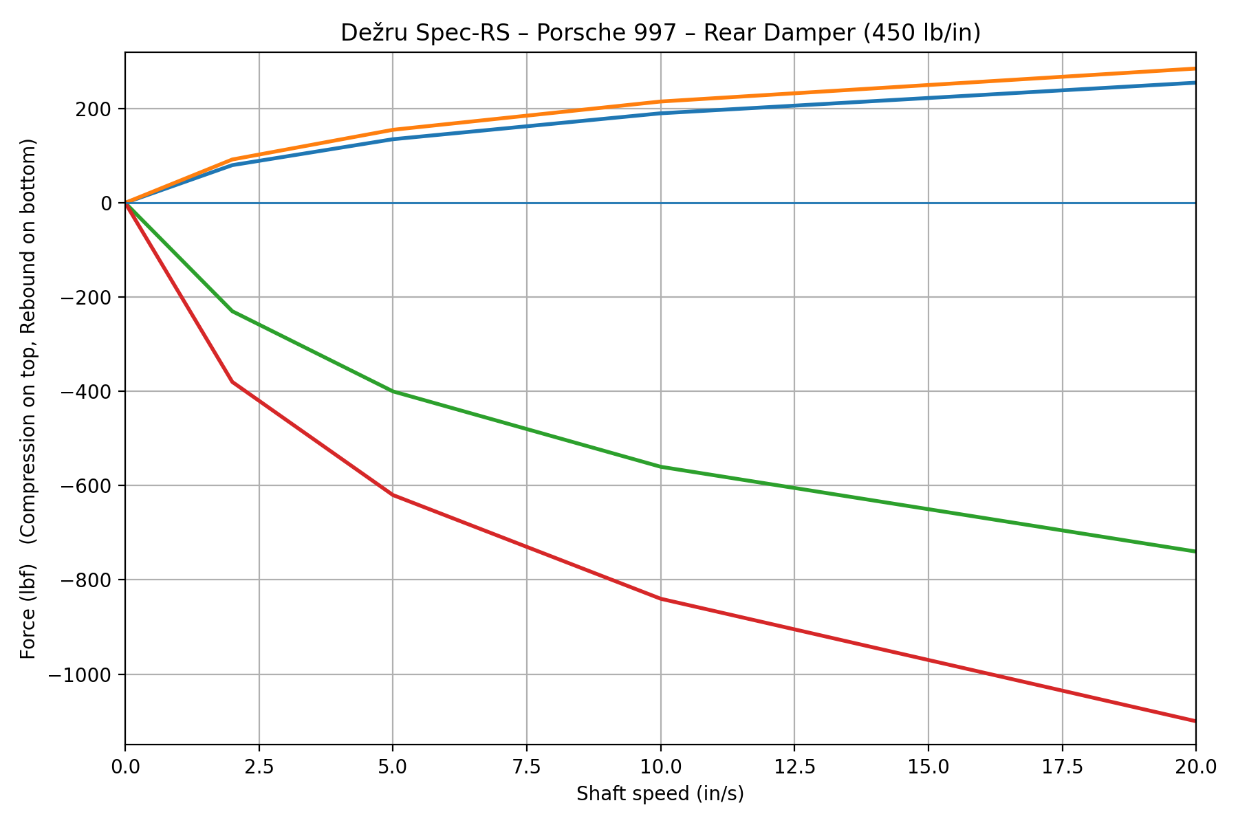 250 lb/in front and 450 lb/in rear spring rates, carefully selected to balance front-end bite with rear stability on the rear-engine 997 platform.