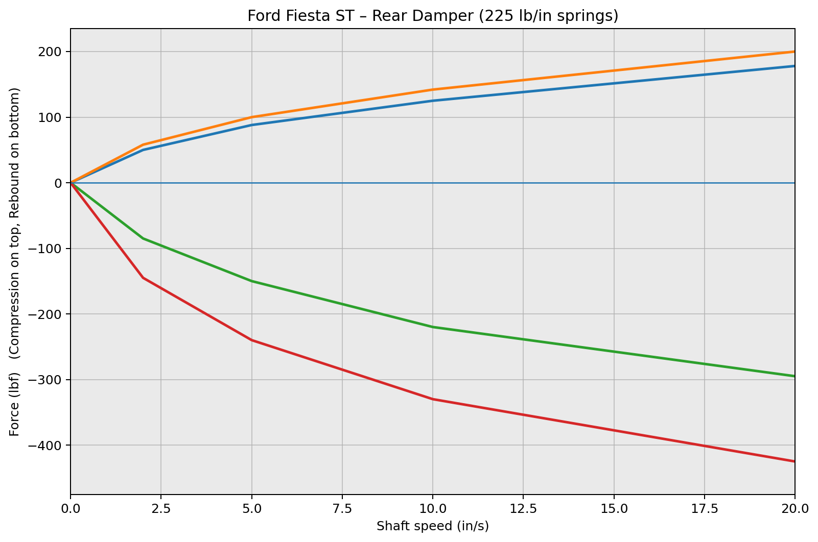 Developed for drivers who daily their Fiesta but still enjoy spirited street driving, canyon roads, and occasional HPDE track days, the Spec-S features digressive piston valving that provides strong low-speed support during braking, turn-in, and rapid transitions, while remaining compliant over rough pavement, expansion joints, and uneven surfaces. Rather than chasing excessive stiffness, this setup targets a balanced ride frequency in the ~2.1–2.4 Hz range, sharpening response while keeping the car composed and livable on real roads.