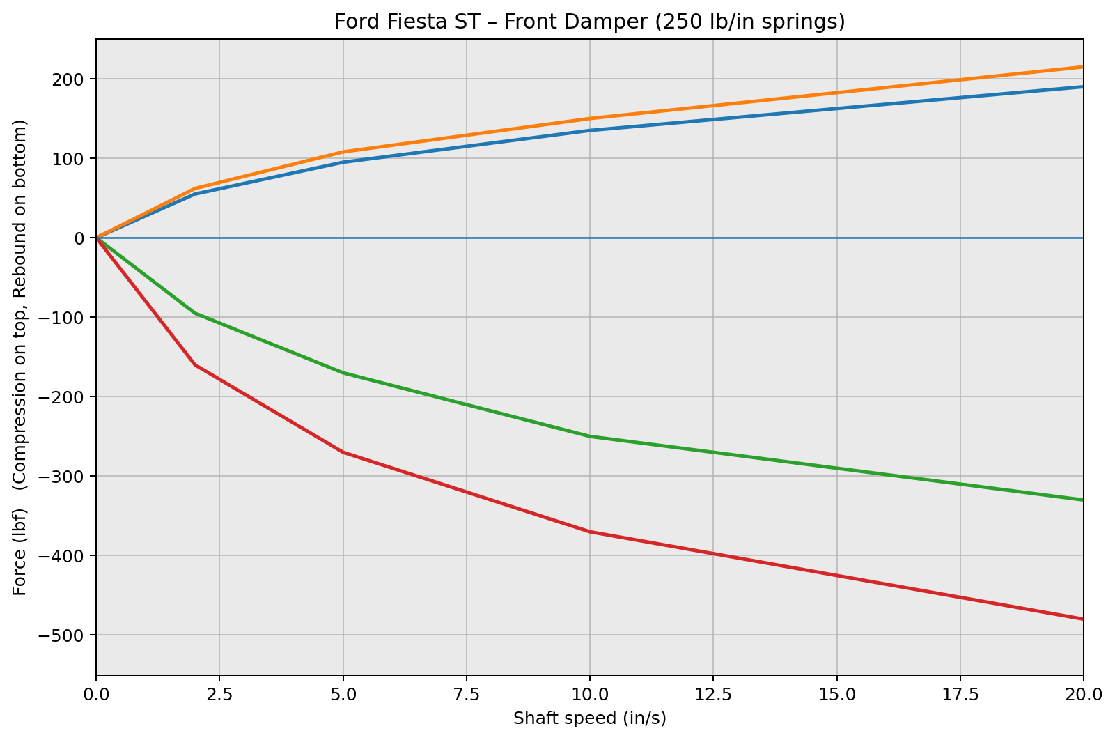 Developed for drivers who daily their Fiesta but still enjoy spirited street driving, canyon roads, and occasional HPDE track days, the Spec-S features digressive piston valving that provides strong low-speed support during braking, turn-in, and rapid transitions, while remaining compliant over rough pavement, expansion joints, and uneven surfaces. Rather than chasing excessive stiffness, this setup targets a balanced ride frequency in the ~2.1–2.4 Hz range, sharpening response while keeping the car composed and livable on real roads.